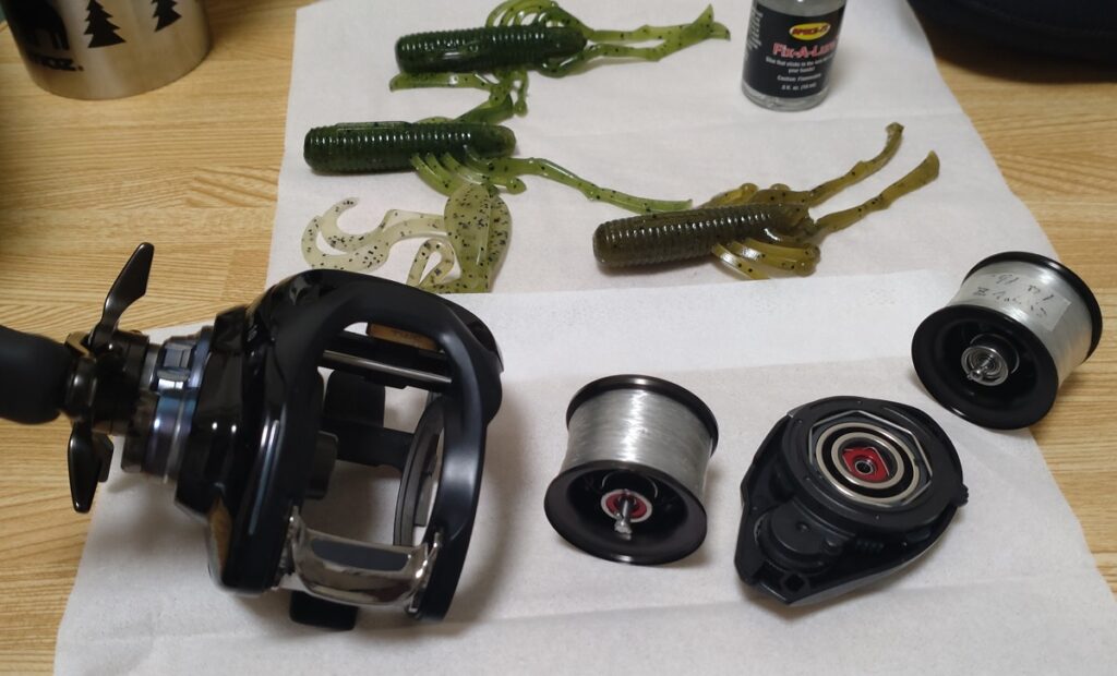 ピッチングの伸びが欲しいのと、14gくらいまでのルアーを使う事が多いので、スプールのベアリングを交換しています。