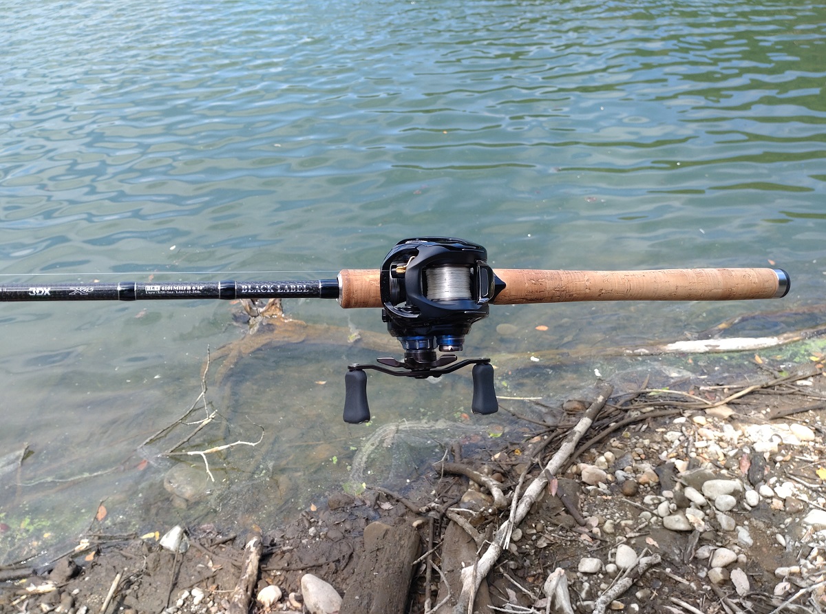 #5/0フックだと、14lb.ラインじゃないと、遠投でのフッキングは決まらないですね、14lb.を巻いたスプールに交換、立ち木の木の枝にからめて、シェイクしてると、BASSがヒット