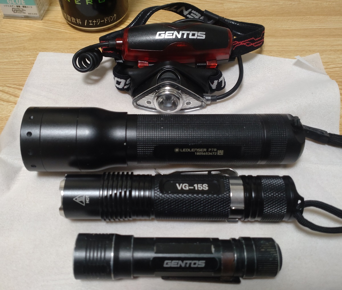 朝の早朝や、夕日が沈んだ後、キャンプなどで、私が使用してるLEDライトを紹介したいと思います、持っているモノは、ほとんどが充電式で、用途に合わせて使っており、明るさ、財布の優しさを求めたら、充電式が主になっていました。