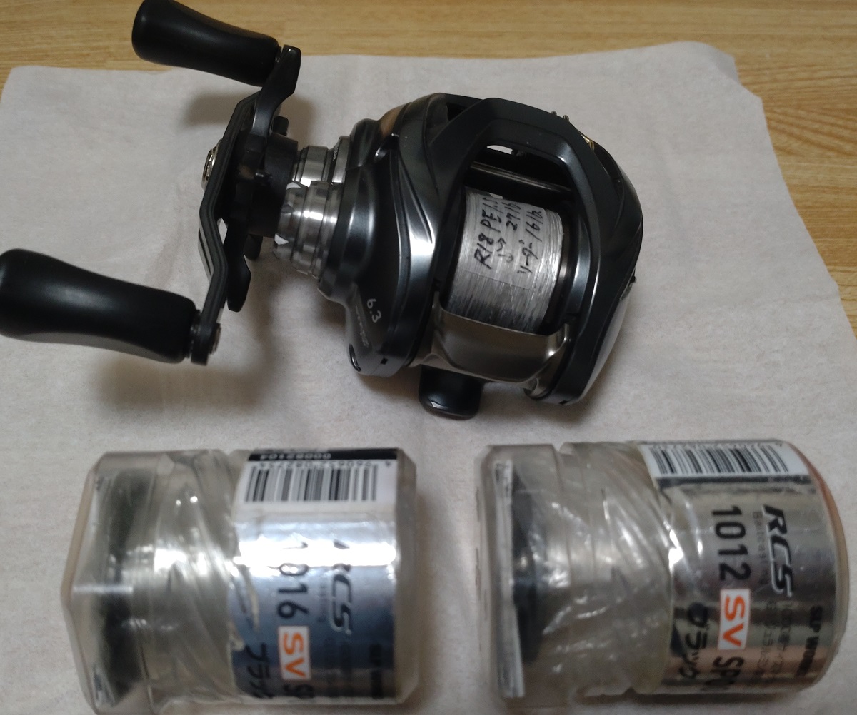 7g以上のルアーを使う時は、SV1016スプールを使います、5gのライトテキサスなども出来ちゃうから、一番使用多用してるスプール、遠投する事が多いので、16lb.~20lb.ラインを使用、1オンスくらいまでは、このスプールを使っています。