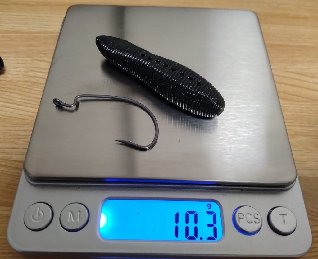 動きがおかしくなる様なら、シンカーを外そうとは思っていますが、Hロッドで投げる予定なので、10gは、欲しかった。