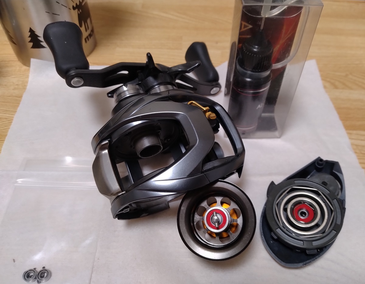 ヘッジホッグスタジオさんの、かっ飛びチューニングキットAIR BFS、セラミックボールベアリングよりも、軽量ルアーが使いやすいのと、スプールのノイズが純正ベアリングより静かなので気に入ってます、何より、キャストが気持ちいい