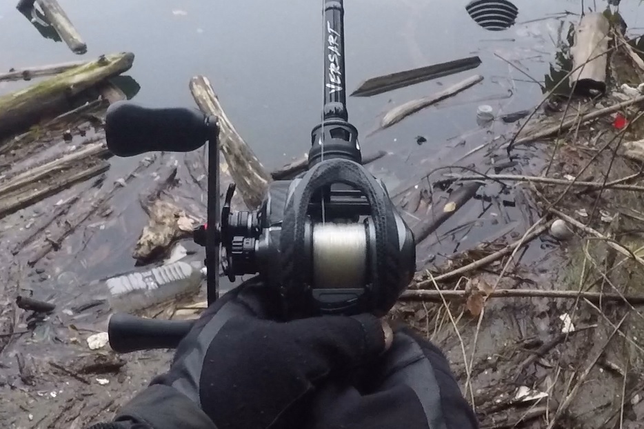 釣行の終わりに、アオコなどで、汚れたライン