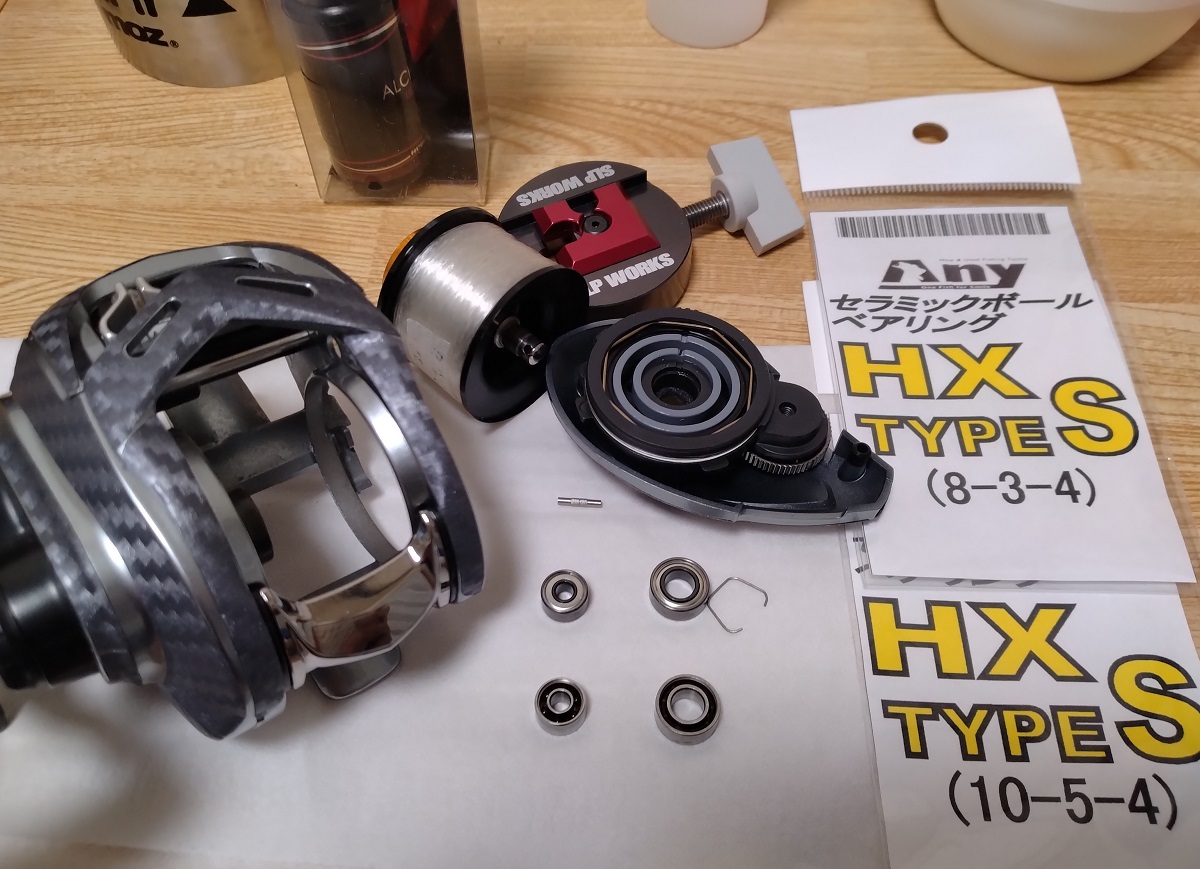 10lb.が100m巻けるから、純正スプールがお気に入り、ベイトフィネス専用にするなら、糸巻量が少なくて良いスプールは有るけど、ロングキャストしたいから、ノーマルスプールをセラミックベアリングに交換しました。