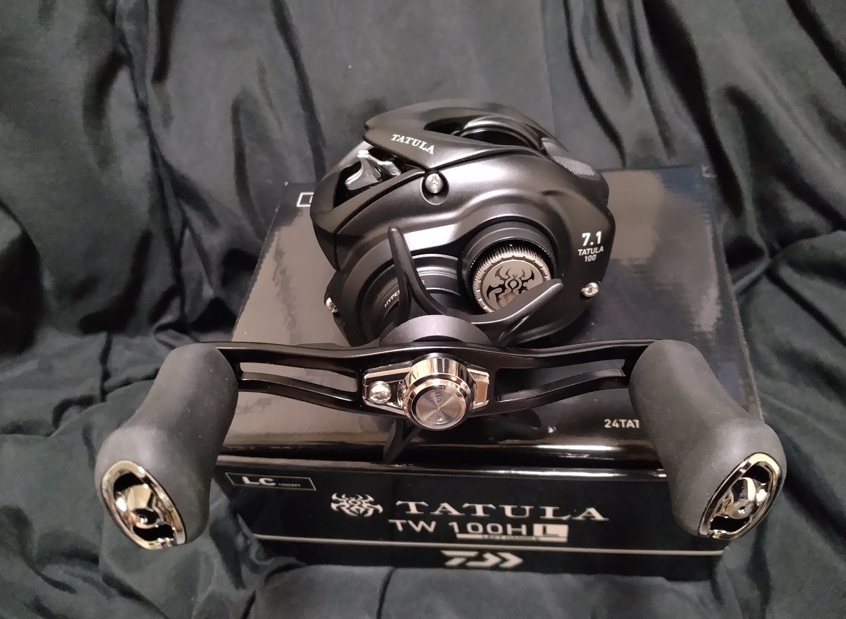 気にはなっていたのだけど、値段が落ち着くまで、待ってました、USAダイワで、先行販売されていた24タトゥーラTW100、かなりデザインはきてます、黒系のベイトリールが好きな私の好み、デザインがかっこいい