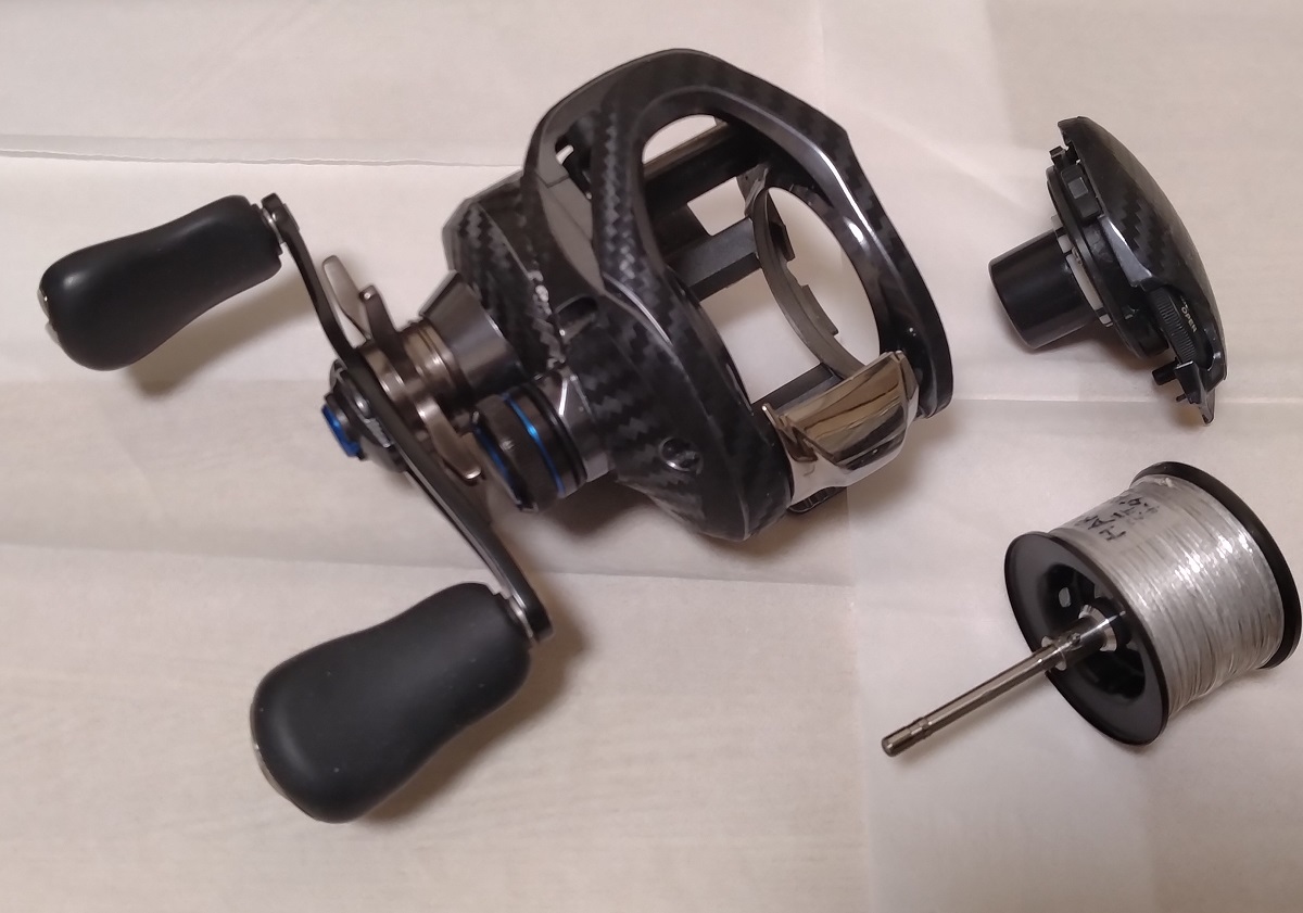 私のSLX DC XTの場合は、メインギヤとピニオンギヤの洗浄とグリスアップ、そして、スプールからの水で一番被害にあうピニオンギヤを支持してるベアリングの交換でシャリ感が無くなりました。
