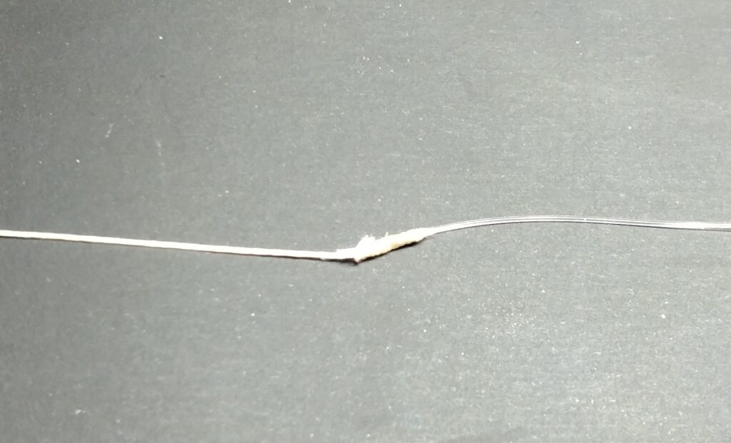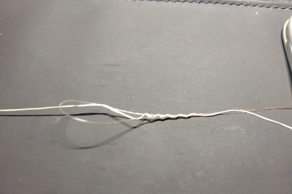 曲げたラインにPEラインを6回巻き付け