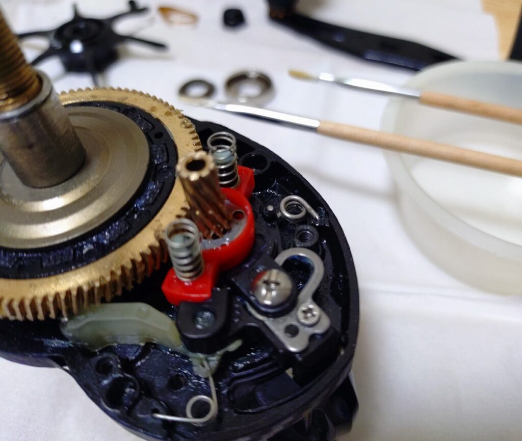 釣具屋さんに取り寄せをお願いしてたら、3ヶ月待ちとか言ってたのに、1週間で届き、さっそくオーバーホールと、パーツ交換を行いました。